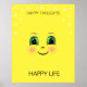 Happy thoughts and happy face brings happy life on yellow Poster. Something to have always on mind!