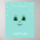 Happy thoughts and happy face brings happy life on teal Poster. Something to have always on mind!