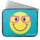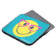 This fun teal laptop sleeve features a yellow happy face with faux pink glitter glasses and white tape at the nose ridge. A playful, colourful design that's perfect for kids! Personalise it to create a one-of-a-kind tech accessory they'll love.