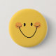 Button featuring a yellow happy face with a big smile and rosy cheeks. Cute alternative to more traditional
