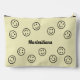 Black happy faces on a light yellow background LARGE accessory pouch. Both the colour of the happy faces, text and background can be recolored as desired using the 'edit design' tool in the template.