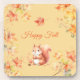 A cute red squirrel holding a heart sits among colourful autumn leaves. The text can be easily changed to whatever greeting you wish.