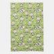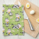 A Cute Green Dish Towel Of Happy Smiling Black And White Cartoon Cows