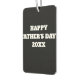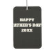 Happy Father's Day 20XX car air freshener. Make it smell like a new car with a fresh scent. Add your own message on the back. Cute affordable present for men, best dad, greatest father, cool grandpa, stepdad, daddy, pops, papa, mechanic, teacher, boss, coworker etc. Black and white or custom colours. Cool automotive presents for him. Elegant bold and script typography template for your message. Include a date optional.