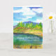 A nice nature themed Father's Day card featuring a desert lake landscape in spring with trees leafing out, new grass, purple mountains, and large fluffy cumulus clouds in a fresh blue sky painted in watercolor. You can change the text to fit your needs.