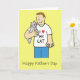 A man wearing a t-shirt that says 'I love my cat' cuddles a small grey kitten. The image is accompanied by the words 'Happy Father's Day'.