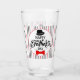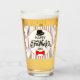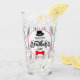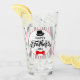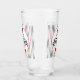 Say "Happy Father's Day", with this drinking glass. The whimsical type fonts are accented with a black hat and a red bow tie. The entire design is inside of white oval that's overlayed on a red, black and grey pinstriped background. This design is on both sides of the drinking glass.