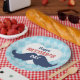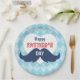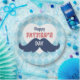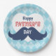 A hip and fun design for wishing your dad a Happy Father's Day featuring a moustache and heart on an argle pattern background in shades of blue with "Happy Father's Day" written on it.