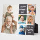 Happy father's day gift idea for grandfather -A modern photo plaque with a collage grid created with 5 pictures and message on a trendy Wood block.