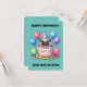 Below the festive illustration is a customisable space where "YOUR TEXT OR NAME" is indicated. This allows for personalisation, giving clients the opportunity to add a name or a personal message, making the card a unique and special token for the birthday person. The combination of the cute pug, delicious-looking cake, and floating balloons makes this card a perfect fit for anyone of any age who enjoys a dash of whimsy on their special day.