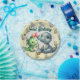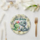 A Happy First Birthday Paper Plate With Number One Cupcake And Cute Baby Dinosaurs