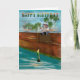 Original digital painting by Ines Miller; whimsical young teddy bear fishing on a wooden port. This brown teddy bear card may be personalised with your own text or special message.
