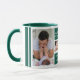 Unique first father's day gift idea -A modern photo coffee mug with a collage grid created with 5 pictures and message on a trendy Green colour block.