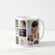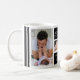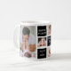 Unique first father's day gift idea -A modern photo coffee mug with a collage grid created with 5 pictures and message on a trendy black colour block.