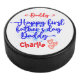 For the first time, dad, this 'Happy First Father's Day, Daddy' text and hearts image in blue with a monogram for the baby's name in red, from a baby boy. Best Daddy Ever. Hockey puck.