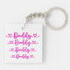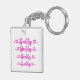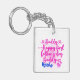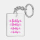 For first time dad, this 'Happy First Father's Day Daddy' text and hearts image in pink with monogram for baby's name in blue, from a baby girl. Key ring for new daddy.