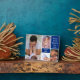 Unique first father's day gift idea -A modern photo plaque with a collage grid created with 4 pictures of the new dad and baby with message on a trendy black colour block.