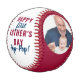 First father's day baseball for new dad or granddad with two photos. The wording reads "Happy first father's day pop-pop!" and you can edit "pop-pop" to someone else if you wish. The photo template is set up ready for you to add your pictures and you can also add the year. The design has a colour palette of deep red, midnight blue and white. A personalised baseball is a great gift for father's day, birthdays, new baby keepsakes etc.