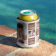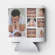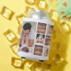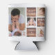 First father's day gift idea -A modern photo can cooler with a collage grid created with 4 pictures and message on a trendy Wood block.