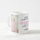 First mothers day grandmother mug featuring the cute saying "happy 1st mother's day grandma", 2 photos of the grandchild, a pink heart, and the childs name.