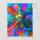 Happy Flower kid's art pink and blue pen and ink Postcard