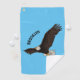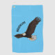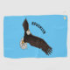 This happy bald eagle is flying high in the sky. Drawn in fun illustration style.