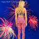 Creative imagery, designed this, graphic art, of dark-blue text "Happy Fourth", displayed against a, red and white, striped, flag pattern-with navy-blue, and white stars, scattered across.