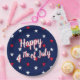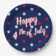Happy fourth of July script red white blue stars Paper Plate