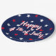 Happy fourth of July modern script text red white and navy blue stars pattern patriotic festive cute fun holiday Party Paper Plates.