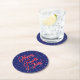 Happy Fourth of July script red white navy stars Round Paper Coaster
