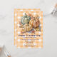 Celebrate the season with this cozy fall design featuring three pumpkins in sage green, tan, and cream surrounded by autumn leaves. The warm orange and white checkered background adds a rustic farmhouse touch, perfect for Thanksgiving décor, invitations, or seasonal gifts. A charming way to say “Happy Thanksgiving” with autumn style!