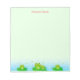 Cute happy little frogs on light green Notepad. Frogs symbolise good luck!