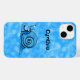 This iPhone case has a fun happy cartoon snail with big white eyes and a blue patterned shell on an abstract background of shades of aqua blue. Customise your name or text with the template.