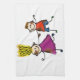 Happy Funny Kids Couple Drawing Doodle Cartoon Tea Towel