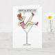 A cartoon of a ladt in a fun pink outfit, reclining in a giant cocktail glass. The lady is saying 'Happy Galentine's Day'.