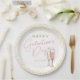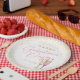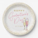 Happy Galentine's Day party plates for Valentine's day. With champagne flutes, a heart and gold glitter.