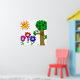 Happy garden poster for kids with smiling flowers, tree and sun.