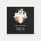 Paper napkins with an illustration of a smiling ghost. Decorated with flowers, rainbows and bats.
