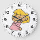 Keep track of time with a smile using this cute blonde girl cartoon wall clock. Featuring a joyful character with pigtails and a toothless grin, this timepiece is a wonderful addition to any nursery, playroom, or kitchen. The cheerful laughing child graphic creates a positive atmosphere in any room. This sassy blonde girl clock is both a functional tool and a whimsical piece of decor that celebrates happy moments throughout the day.