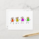 Cute cartoon whimsical illustration of a group of happy little girls stood holding hands together in friendship and support. Easily customise and choose your own background colour or add text. Image available on various gifts and products.