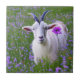 This ceramic tile features a happy goat in a field of wildflowers.