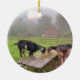 This ornament features two adorable goats eating their dinner as the sun sets on a Connecticut farm.