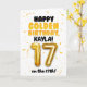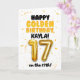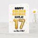 Celebrate your child turning 17 on the 17th, with this Happy Golden Birthday card! Designed in a bright and cheerful gold theme, this card features a fun, bold layout with confetti details and a large gold balloon number. Personalize it with a name on the front and the inside of the card to make their golden birthday extra special!