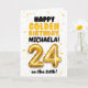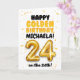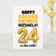 Celebrate turning 24 on the 24th, with this Happy Golden Birthday card! Designed in a bright and cheerful gold theme, this card features a fun, bold layout with confetti details and a large gold balloon number. Personalize it with a name on the front and the inside of the card to make their golden birthday extra special!