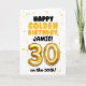 Celebrate turning 30 on the 30th, with this Happy Golden Birthday card! Designed in a bright and cheerful gold theme, this card features a fun, bold layout with confetti details and a large gold balloon number. Personalize it with a name on the front and the inside of the card to make their golden birthday extra special!