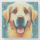 This happy Golden Retriever illustration is a great design for dog lovers and Golden Retriever owners. It has a blue-green background colour and it suits to most colour combinations.