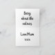 This card is great fun and good quality. I loved the humour inside and on the back. There is the opportunity to change the orientation of this card from landscape to portrait, which I did. It is relatively straightforward to amend the typeface to fit the new orientation. It was well packaged with no plastic. The printing on this card is excellent.