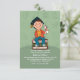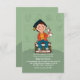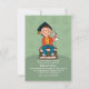 An adorable hand-drawn invitation for a young boy's graduation. The card features a smiling graduate sitting on a pile of books holding his diploma. The card is easy to customise with your wording, font, font colour, paper shape options and choice of six paper types.