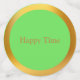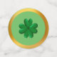 Happy green clovers on green background with golden frame table confetti. Ideal for birthdays, Saint Patricks Day, anniversary, and any other lovely celebration. All text can be personalised.