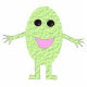 This photo sculpture features a cartoon of a smiling green grape with shiny black eyes and a pink mouth.